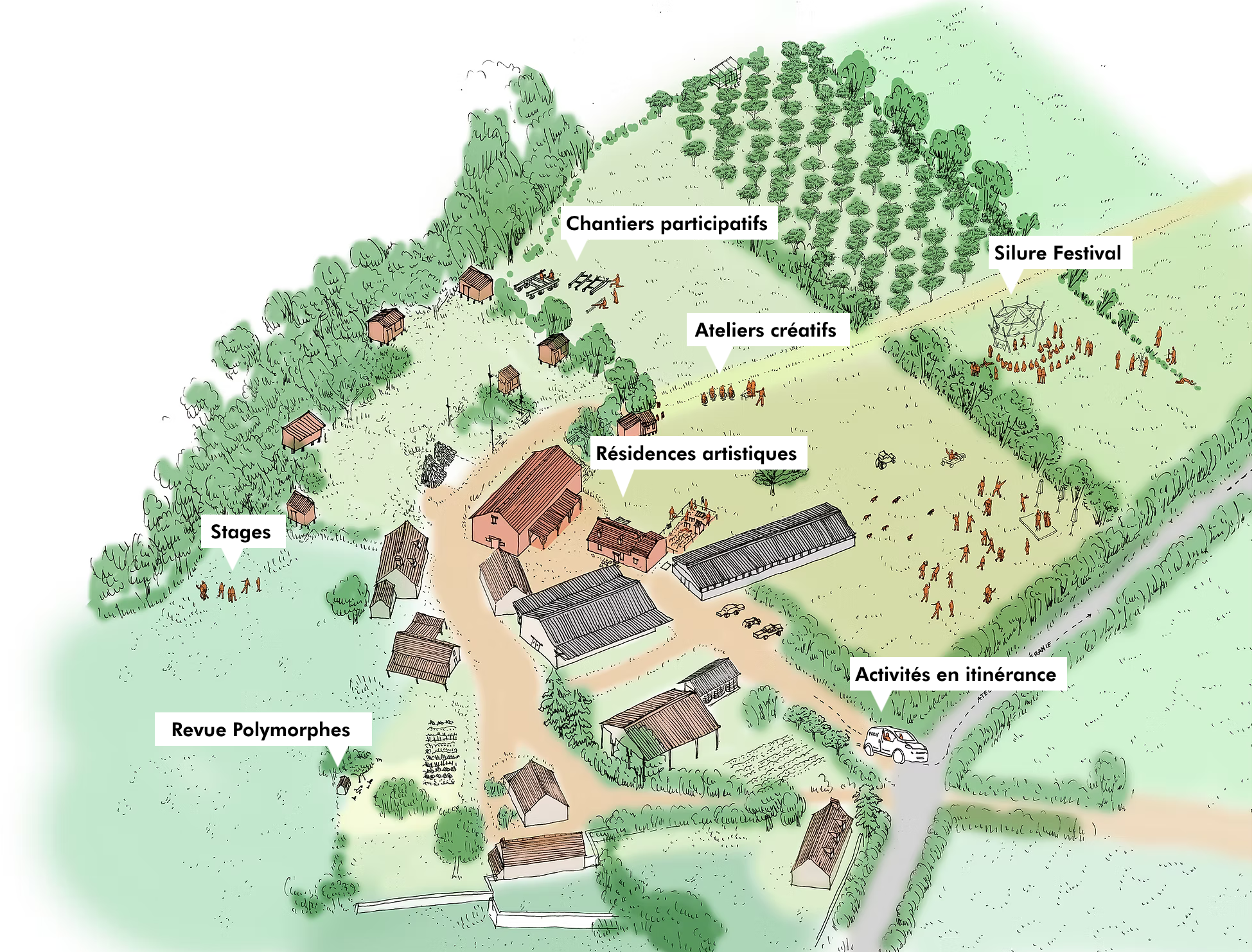 Par le biais de projets artistiques et culturels ancrés dans son territoire rural, Polymorphe corp invite à opérer une transition dans les modes de vie et dans le rapport à la nature. L’association défend l’idée que la campagne offre un rapport à l’environnement et au temps différent de celui que l’on développe en ville, qu’elle est un territoire plus à même de répondre aux défis environnementaux actuels. Elle parvient à valoriser le patrimoine artistique, culturel, naturel, artisanal local auprès de publics variés, espérant enclencher un cercle vertueux par la culture et un épanouissement territorial. L’association mène un travail étroit avec un réseau d’acteurs locaux : des associations, des établissements scolaires, des artisans, des institutions ou encore des acteurs culturels, en complément du développement de projets et actions menées en itinérance. Au bout de 3 ans d’activité, cette symbiose entre activités agricoles et culturelles impacte positivement le territoire : le hameau où l’association s’est implantée est repeuplé et les activités de l’association poursuivent leur croissance, la ferme projetant de s’agrandir.